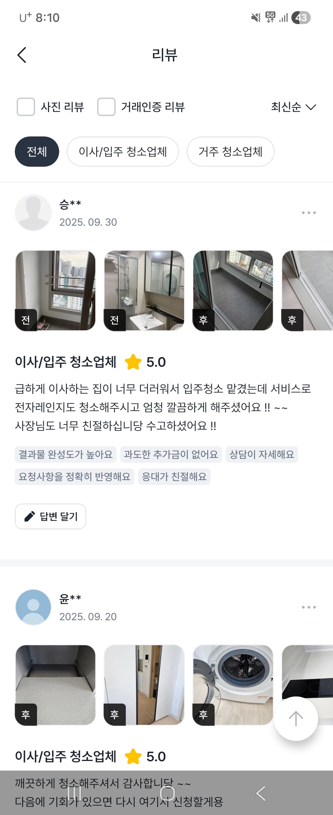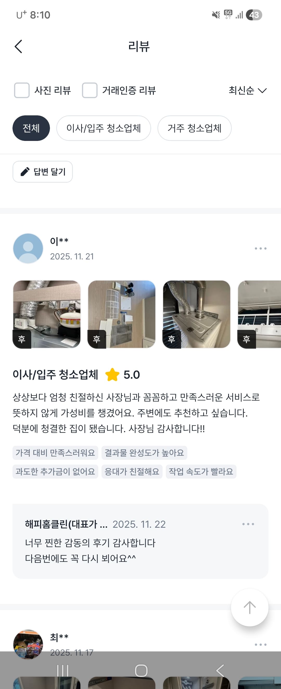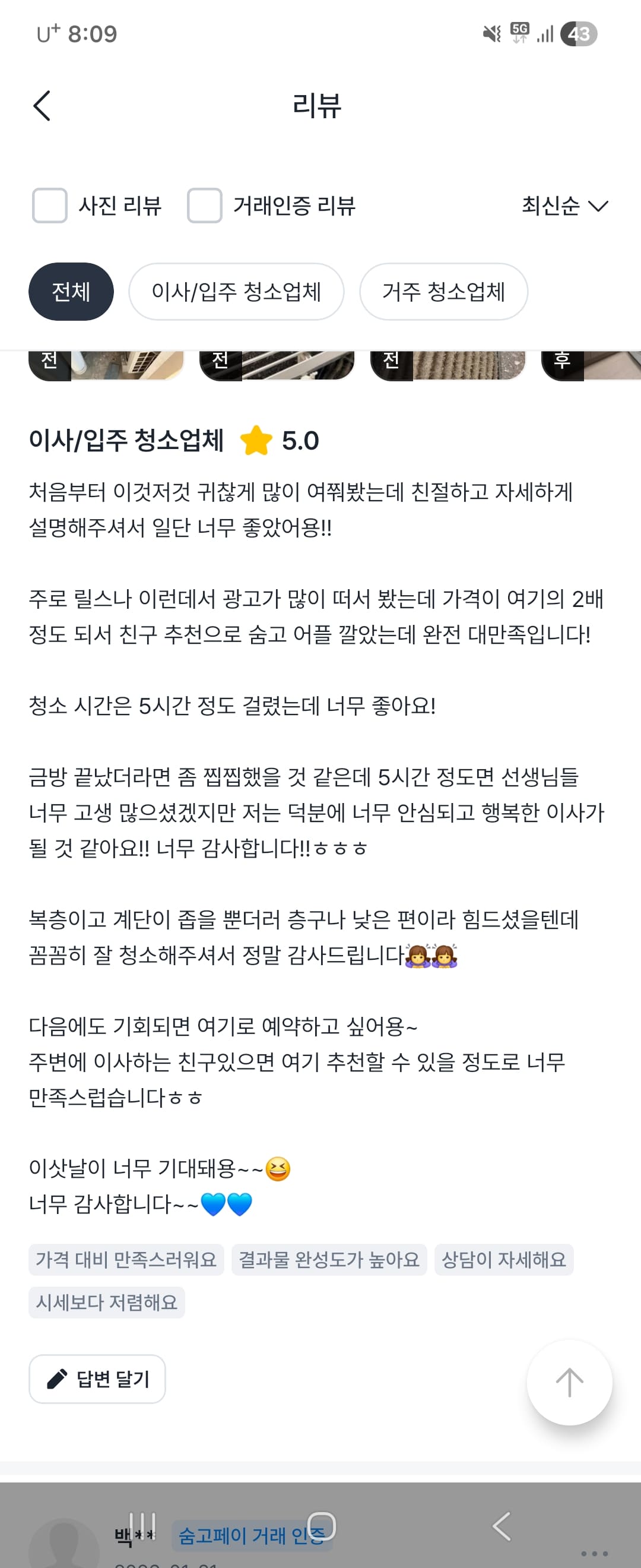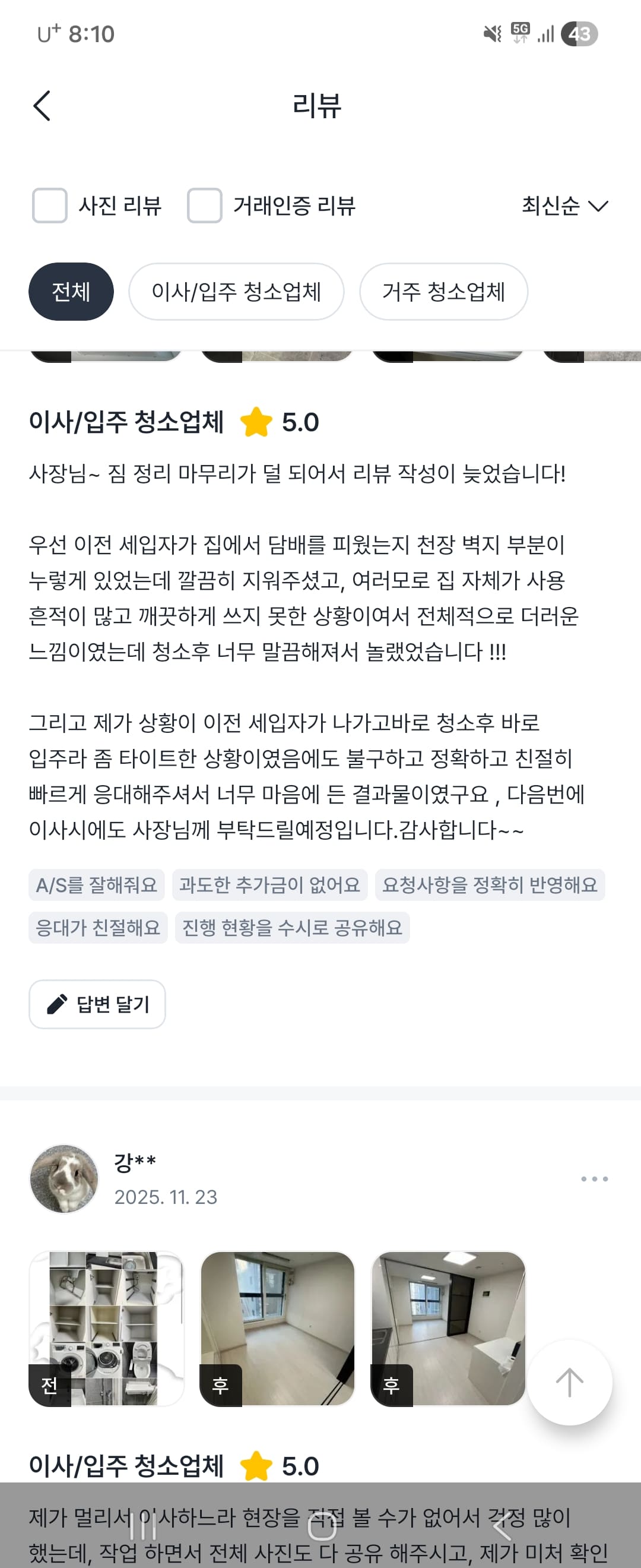 고객 만족도 100% 리얼 후기